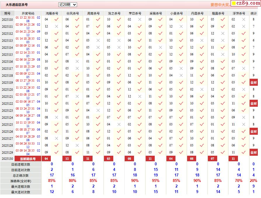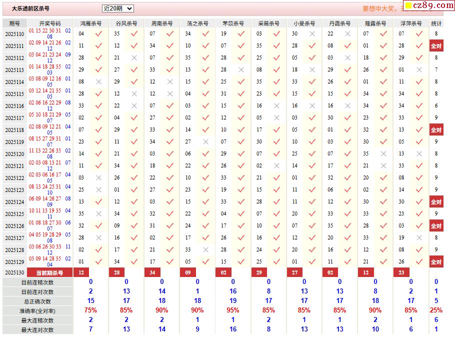 > 25年130期彩票专家超级大乐透前后区杀号图表